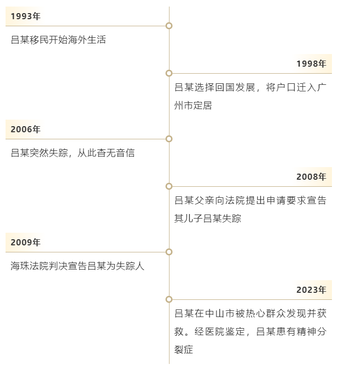 由于涉及宣告失踪的特殊情况,海珠法院在收悉该情况后迅速开通绿色通道进行审查,立即调取当年宣告吕某失踪的判决书等材料,吕某的人生轨迹才得以完整还原。